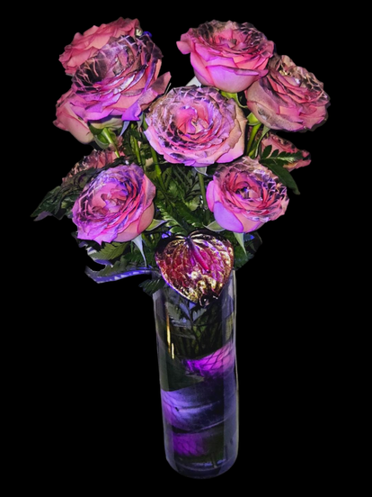 ONE DOZEN LIGHT PINK ROSE'S TINTED TO MUTI COLORED IN A VASE OR WRAPPED SAME PRICE.